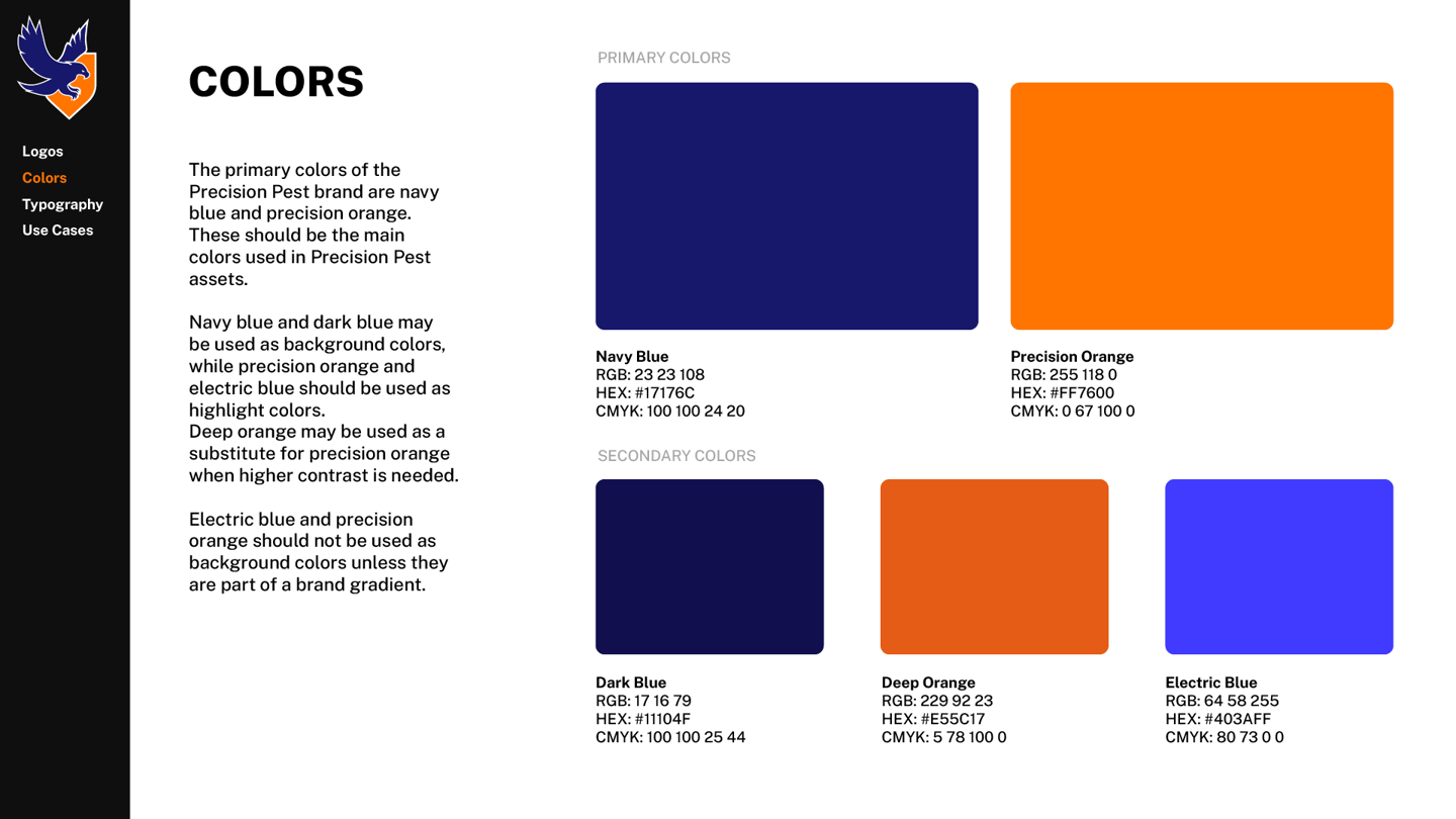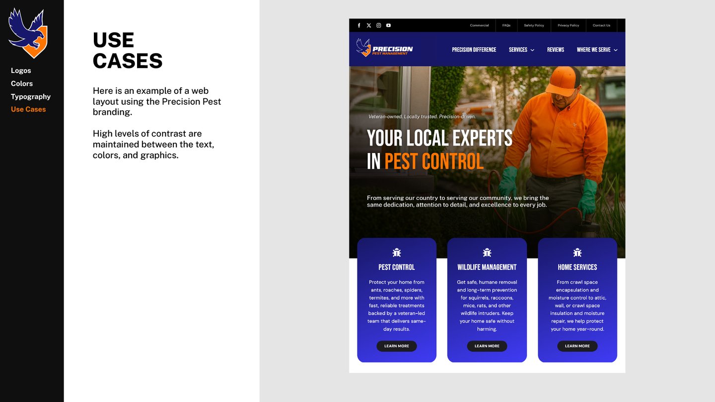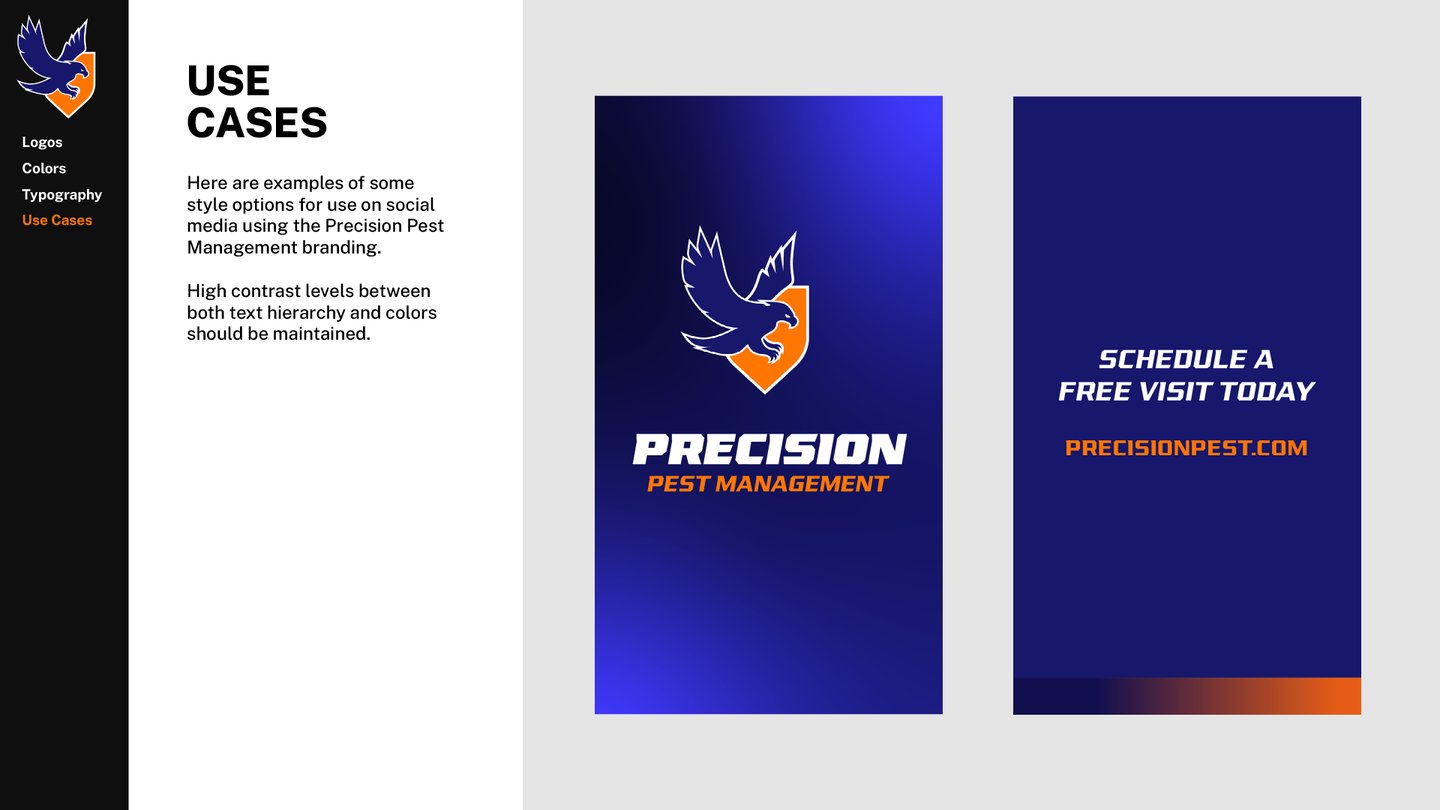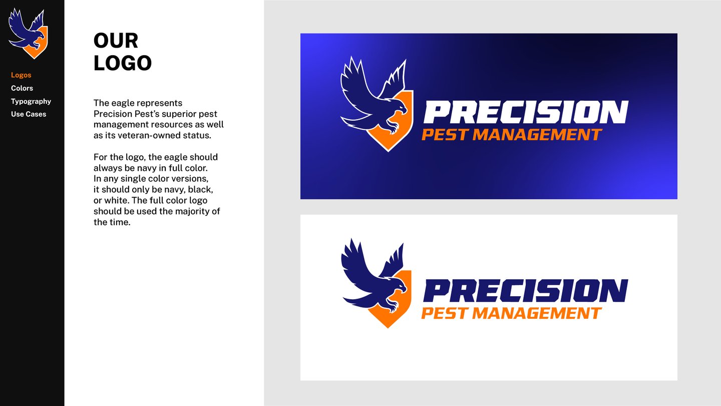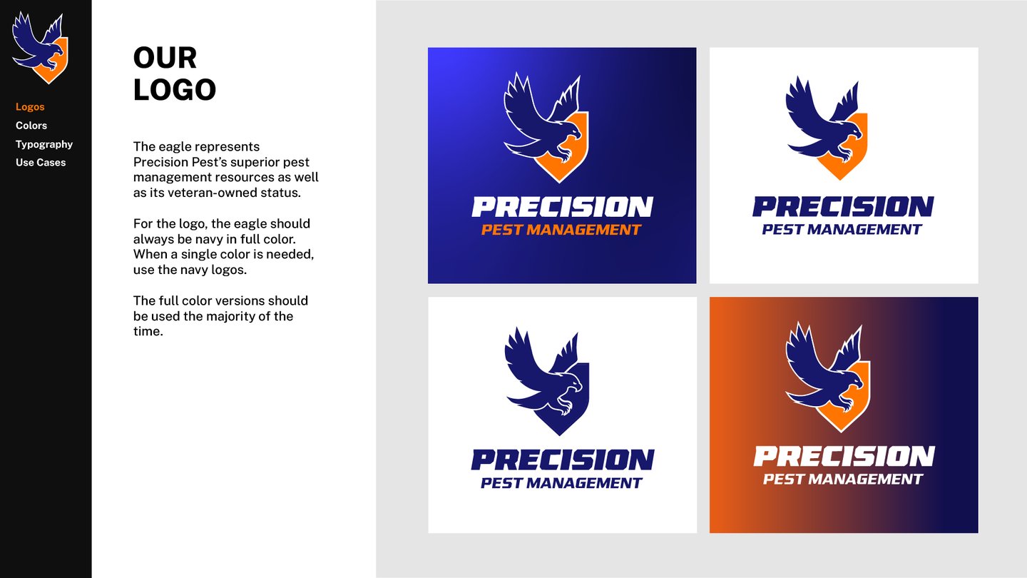 Precision Pest Management had reached out wanting an updated brand and logo. When looking online, there were many brands with red and green colors — each logo featuring some variant of an insect.